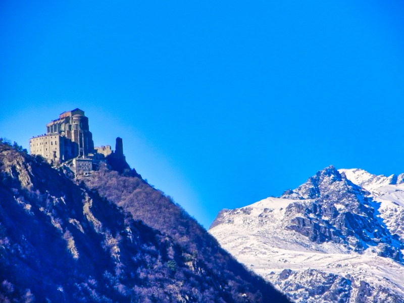 La Sacra, costruita tra il 983 e il 987, sorge sulla cima del monte Pirchiriano, a circa 50 km da Torino. Era custodita originariamente dai monaci benedettini e, dopo quasi due secoli di abbandono, vi fu insediata la congregazione dei padri rosminiani, che oggi la gestiscono insieme a un gruppo di volontari e ascritti. L’Abbazia custodisce numerosi elementi di pregio, tra cui la statua di San Michele Arcangelo, lo Scalone dei Morti con il Portale dello Zodiaco e la Torre della Bell’Alda.